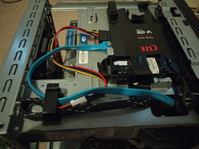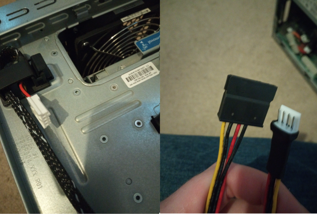 Straight out of the gate I ran in to problems, the G8 doesn’t actually support the use of an internal SSD so I had to make some small hardware hacks to make that possible, specifically re-purposing the power rail and data bus intended for the optical internal Optical Disk Drive (ODD) to serve our SSD instead. Compounding problems I found that the only connector for the ODD is 4-pin Berg Connector (better recognised by people my age as a Floppy Disk Drive Connector). We can get an converter for about £3 on eBay and it doesn’t need to be anything flash. We’ll also need a standard SATA data connector, nothing flash again, the bus is only a maximum of 3mb/ps so don’t go and buy anything special, any spare cable should do the job: