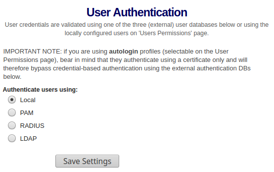 Now that your accounts are defined locally in the OpenVPN Access Server database, you can create local accounts (obviously a RADIUS or LDAP deployment is a stronger option), even PAM is preferred over this as it allows for local security hardening on your Linux platform, for the purposes of this example however we’ll be looking at local only.