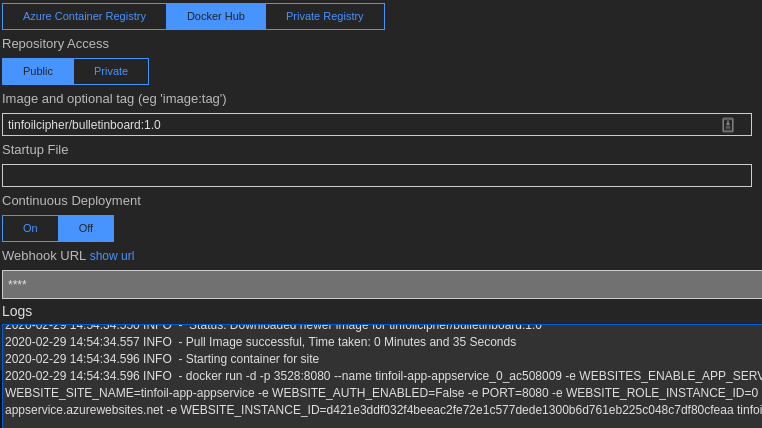 linux_fx_version = "DOCKER|tinfoilcipher/bulletinboard:1.0"