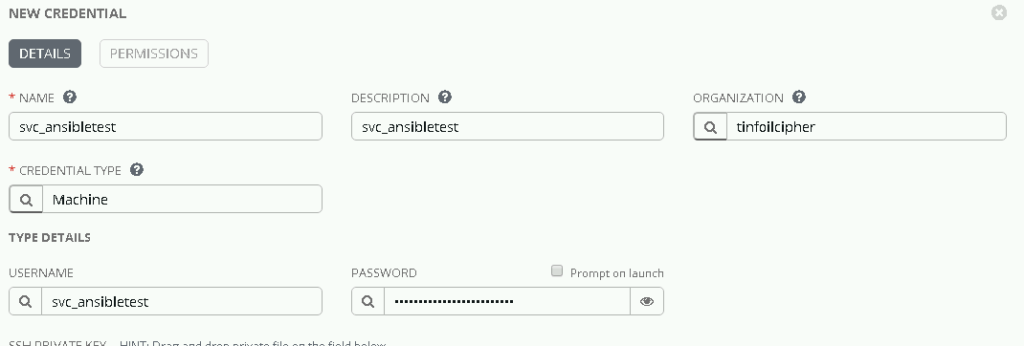Now that the messy work is done on the Operating System, we can move in to Ansible Tower and create a Machine type credential object which will be called at run time. The credential can be applied to any template which is going to be executed against a Windows host(s) and should look along the lines of:
