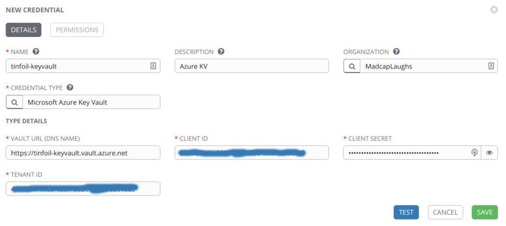 Using this method we can still store our data within Tower’s own Fernet encrypted database, however the secrets can still remain managed outside of Ansible in Azure Key Vault.