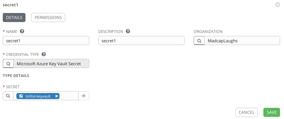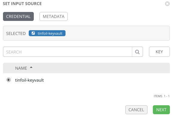 Within Tower, we will define a custom Credential Type to map custom metadata from the Key Vault integration and then inject this data in to playbooks when required.