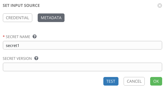 On the next page we need to define metadata for this lookup. This is where we define the data for our specific Secret, defining the name and optionally; the version: