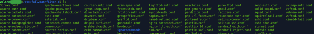 Out of the box, fail2ban contains plugins for dozens of popular applications (and dozens more exist and can be written without much fuss), these configurations can be found in /etc/fail2ban/filter.d as seen below: