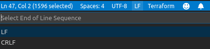 If like me you’re a VSCode user don’t spend an age trying to work out the problem, change the setting by clicking the bottom toolbar and selecting LF when offered the choice and then saving your file: