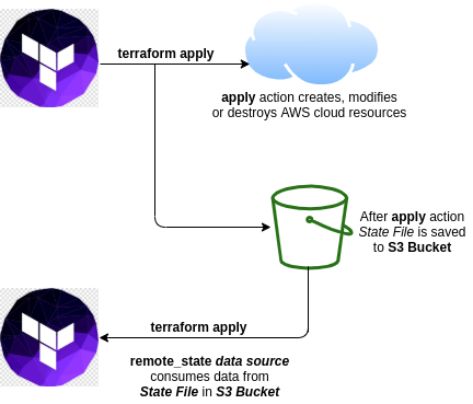 In a lot of videos and forum posts, the function of Remote States is often misunderstood as simply declaring a remote storage backend, a Remote State however allows us to load the state file from a previous configuration, use it to lookup values that we know to be held within and then use them as variables in another configuration. This allows either yourself or other teams to consume information about your configuration programmatically and without complex templating.