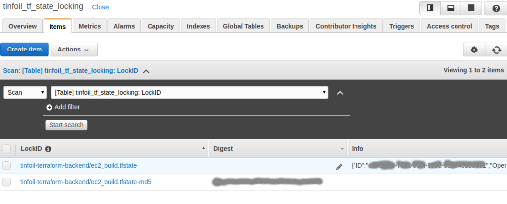 If we now try and apply this configuration we should see a State Lock appear in the DynamoDB Table: