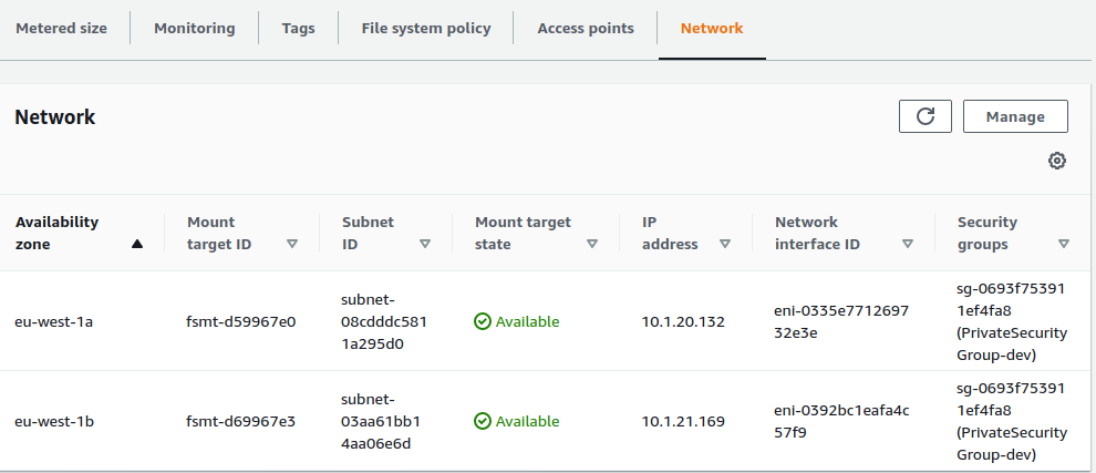 - Our EC2 Instances and EFS Mounts must share at least one of the same Security Groups.