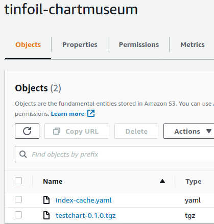 - An AWS S3 Bucket named tinfoil-chartmuseum which is:
