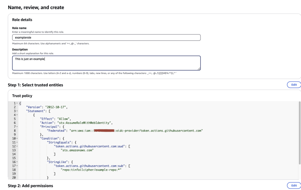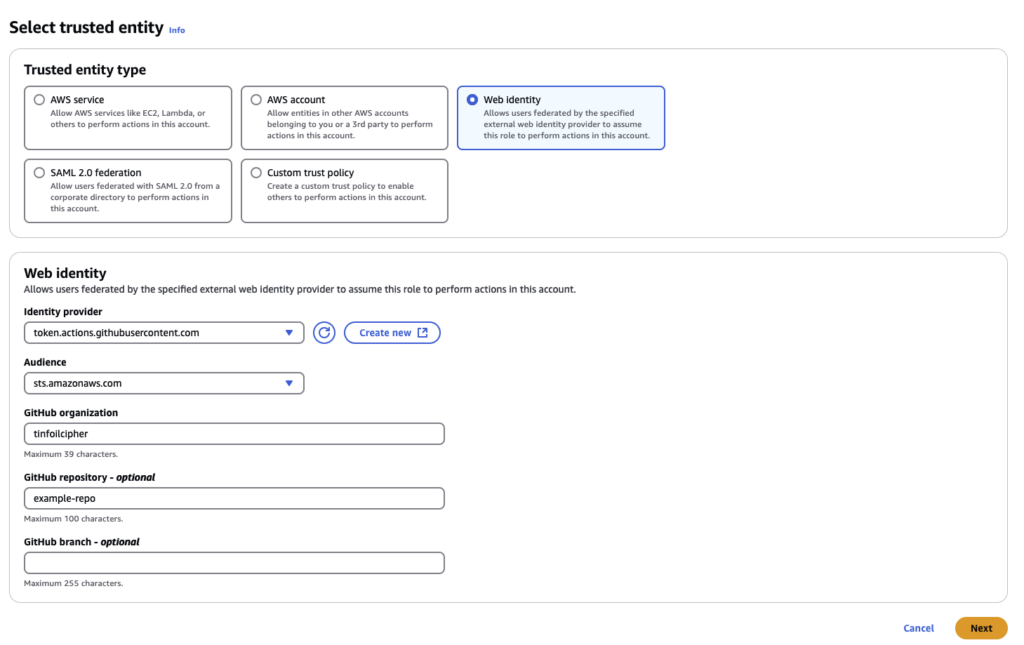 - An IAM role, which our Github Actions steps will use to send Authentication requests to the OIDC Provider