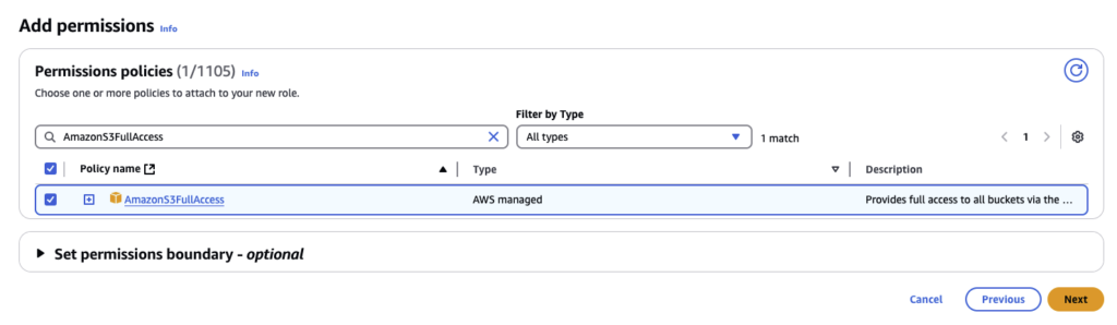Click Next again and give the Role a name and description. In this final page we can see how the Trust Relationship has been templated in JSON. We can manually edit the JSON document after creation via the Role’s Trust Relationship tab if a more advanced set of filters is needed.